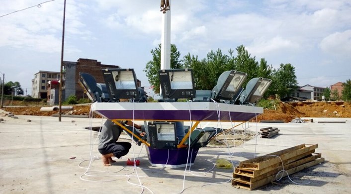 湖南省邵陽市洞口縣20米高桿燈,一共兩套,燈頭結構造型分別是框架式和滿天星,框架式燈頭配置了18盞250w原裝正品飛利浦泛光燈,滿天星燈頭總共搭載了12盞400w原裝正品飛利浦泛光燈,兩套高桿燈分別安裝在水泥路兩側,間距30米左右的十字路口地段,兩套高桿燈的燈具全部分為兩路控制,前半夜兩路全部開啟,后半夜單開一路,在省電的同時依然后能提為十字路口路段供很好的照明亮度。
