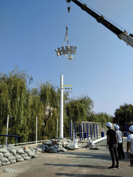 工程,操場四角各安裝一套18米升降高桿燈,每套燈配置12盞300W大功率LED(飛利浦芯片,明緯電源),夜間體育場整體平均亮度為26-35Lux,夜晚如白晝,調(diào)試效果深受校方認(rèn)可。